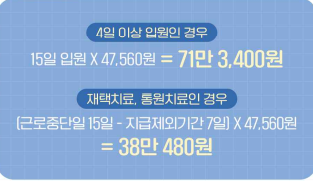 - (급여 산정: 입원 건) 상병수당 최종 급여일수* x 47,560원